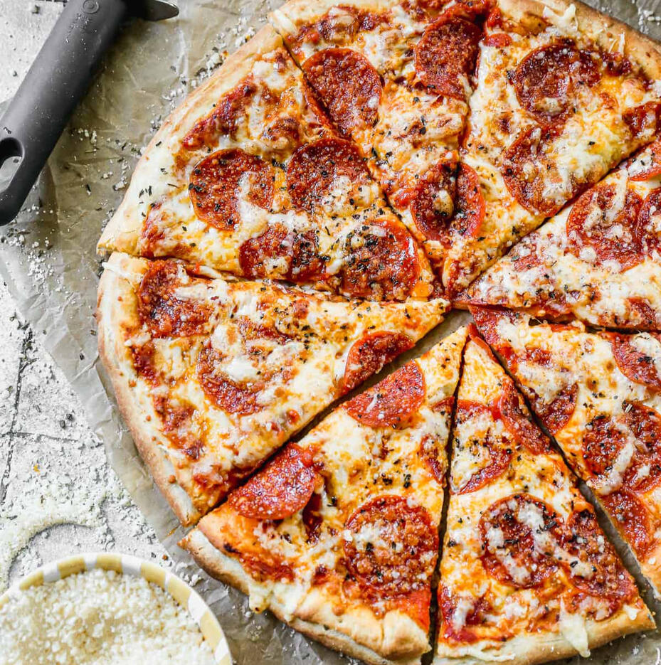 Pepperoni, red onion, blue cheese and extra cheese. The best option for a hangover!