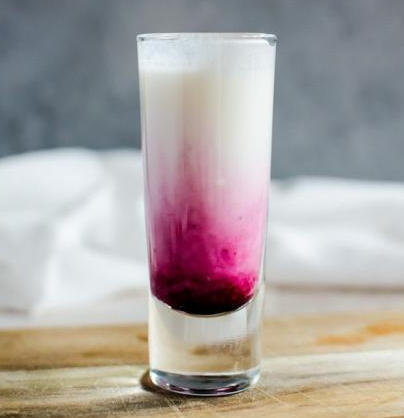 Blueberry Vodka, Galliano and Hroth Milk. Decorated with Whipped Cream and Blueberry Sprinkles