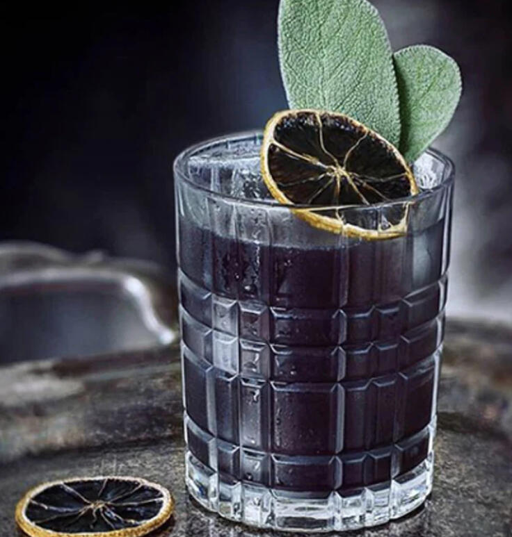 Black Vodka, Lime Syrup, a small Amaretto's shot and decorated with Brown Sugar.